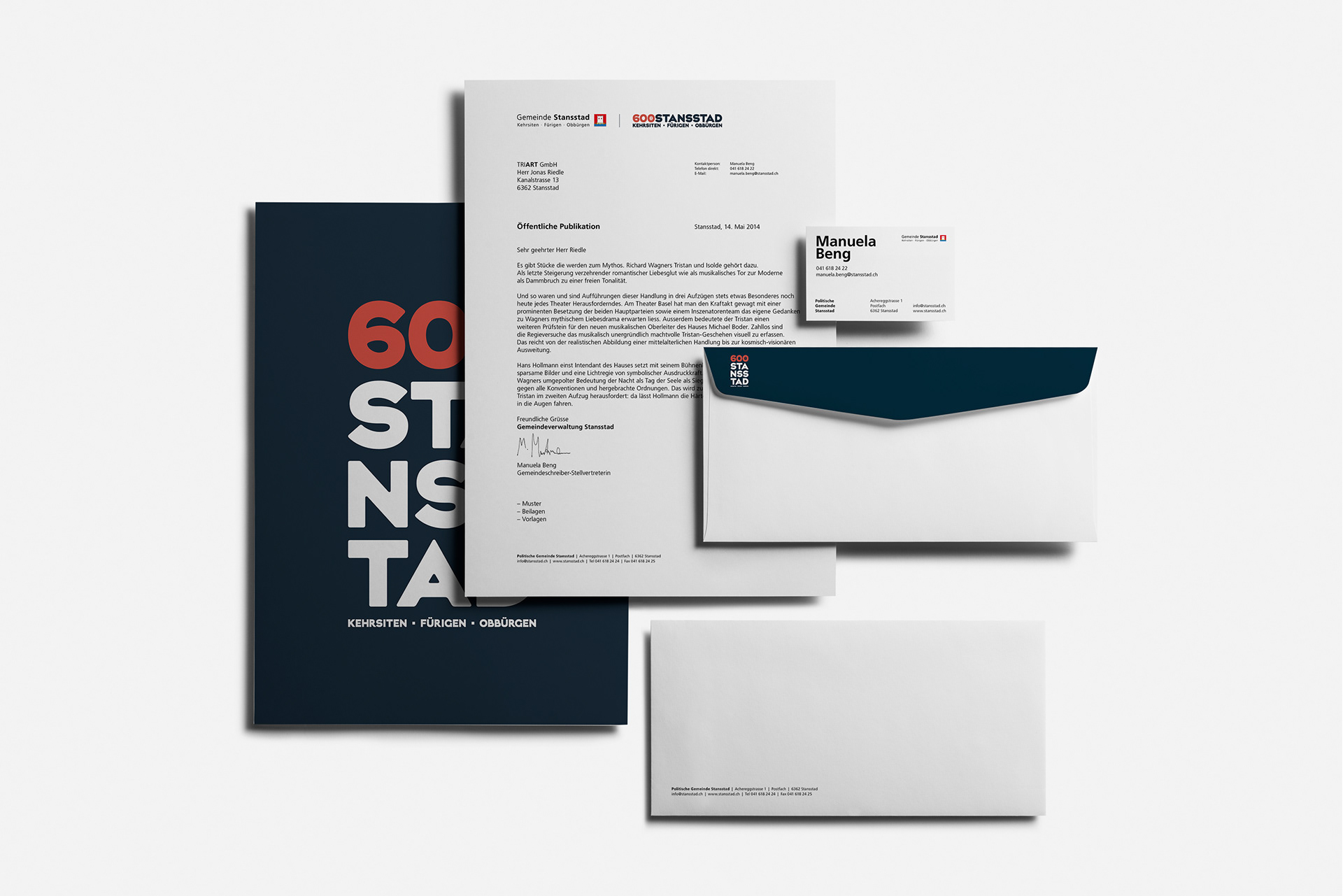 Gestaltungswettbewerb für die 600-Jahr-Feier der Gemeinde Stansstad, 2. Platz. Design competition for the 600 years anniversary of Stansstad (town), second place.